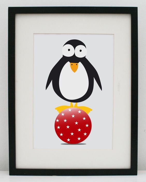 Have you ever seen a penguin at the circus? Now you have. This Circus Penguin print is nothing but fun to have around.